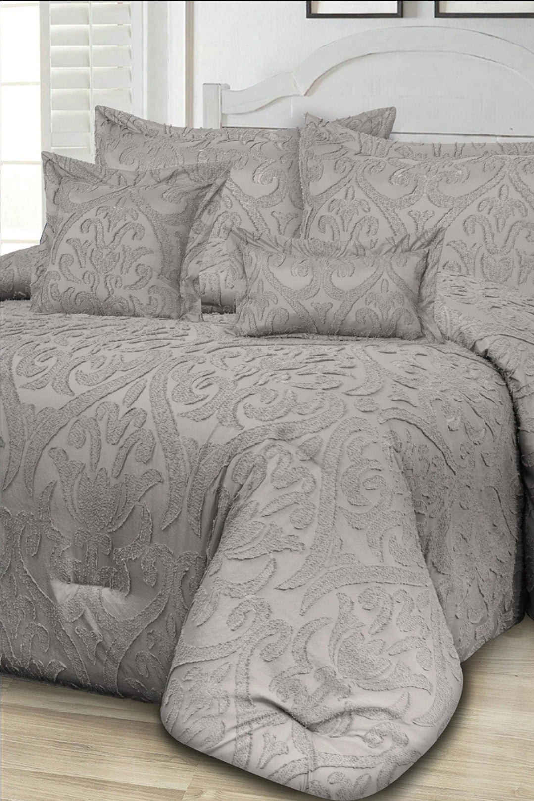 Silver Grey Cutting Flower Comforter Set